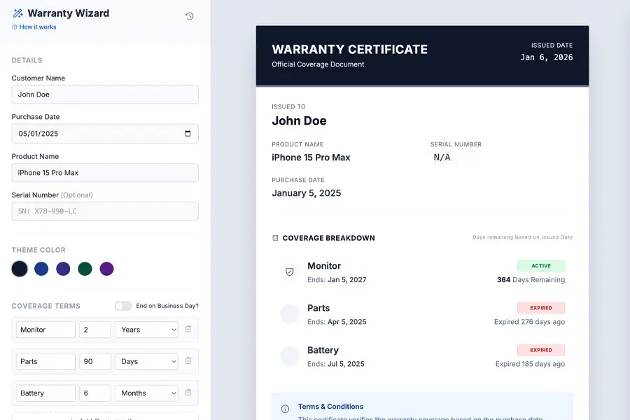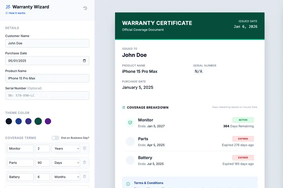 Warranty Period Calculator